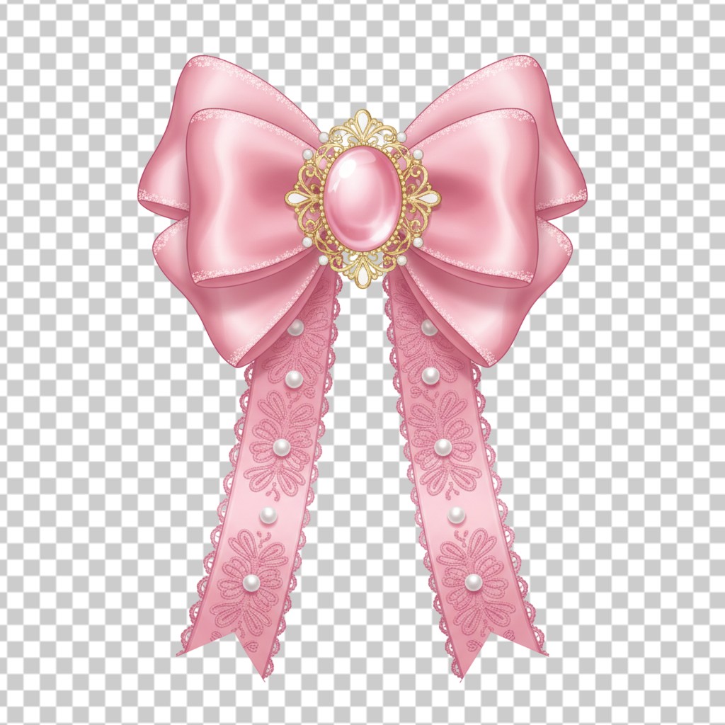 Elegant Pink Silk Ribbon Bow with Decorative Brooch PNG Transparent Background