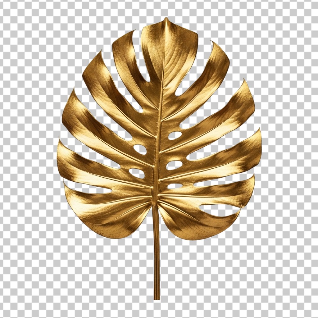 Luxurious Glossy Golden Monstera Palm Leaf Decoration PNG Transparent Background