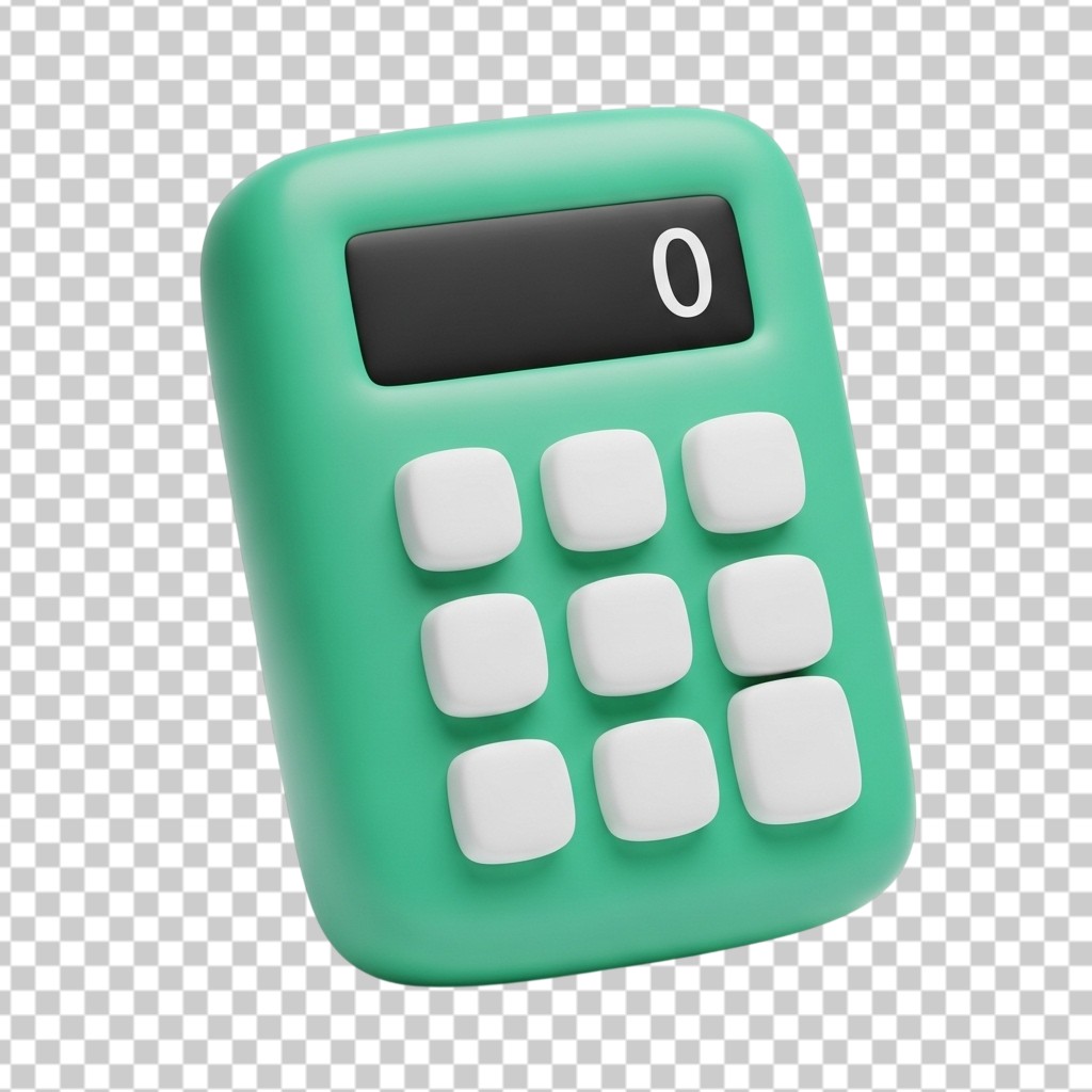 Modern 3D Green Calculator Icon for Finance and Office Math PNG Transparent Background