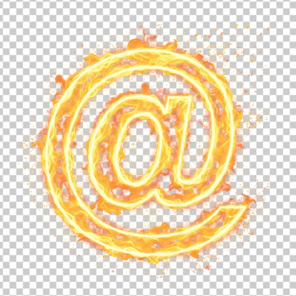 Creative 3D At Symbol Made of Glowing Golden Energy Flames PNG Transparent Background