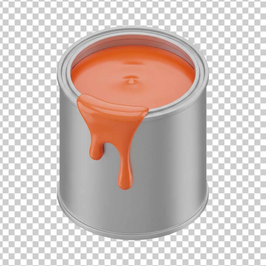 3D Open Paint Can with Dripping Orange Paint PNG Transparent Background