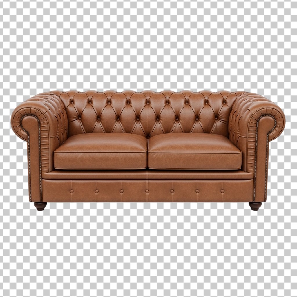 Classic Brown Leather Chesterfield Two Seater Sofa PNG Transparent Background