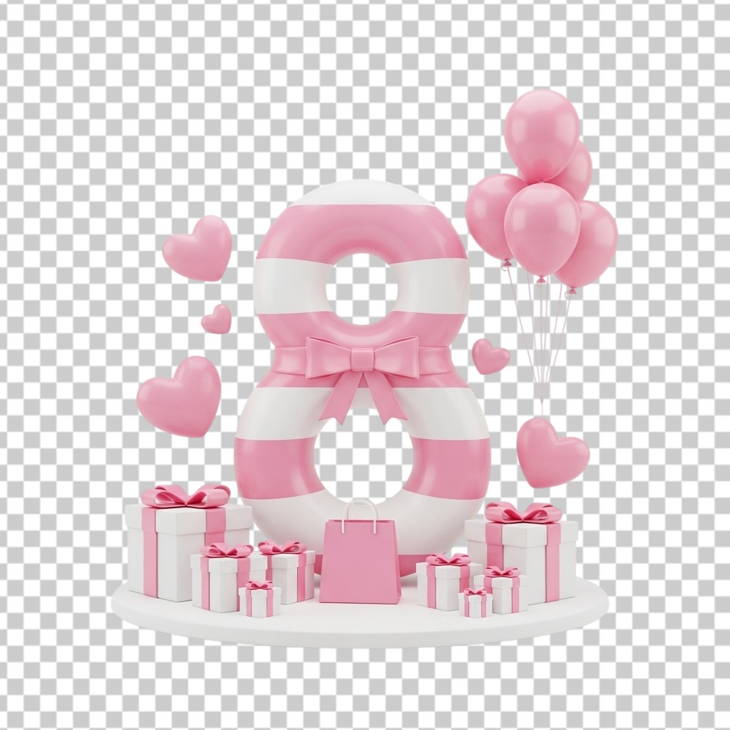 3D International Women's Day Number 8 with Hearts PNG Transparent Background