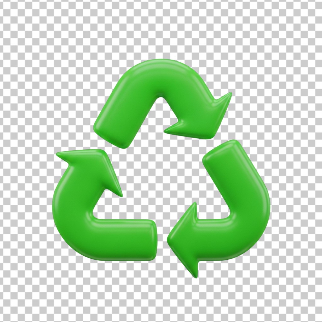 3D Green Triangular Recycle Icon for Sustainability PNG Transparent Background