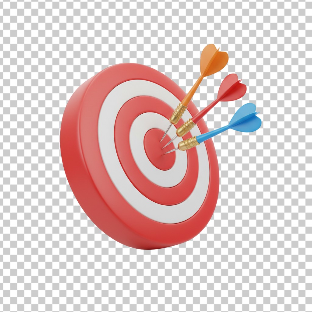 3D Red Dartboard Target with Three Darts Concept Illustration PNG Transparent Background