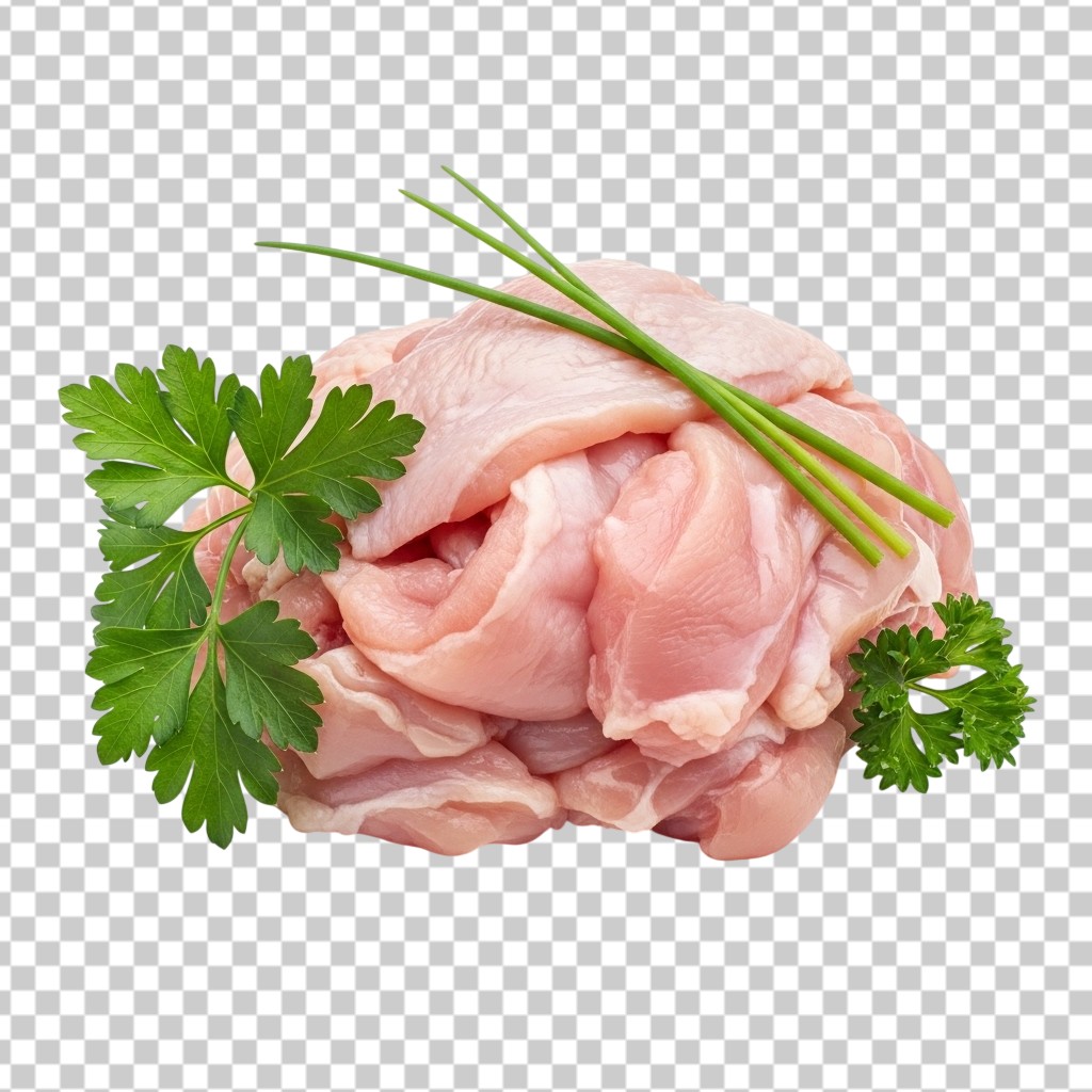 Fresh Raw Chicken Breast Pieces Garnished with Herbs PNG Transparent Background