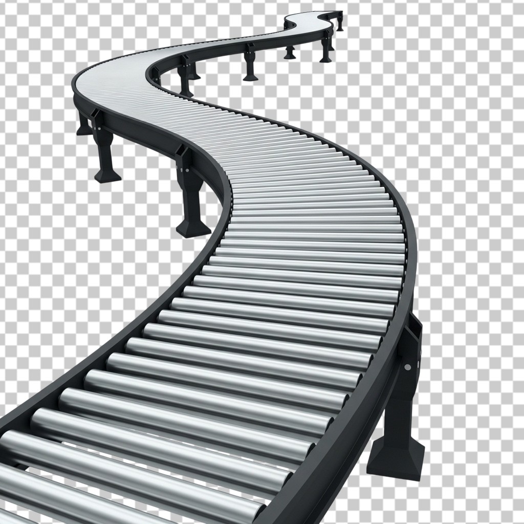 Industrial S-Shaped Roller Conveyor Belt System PNG Transparent Background