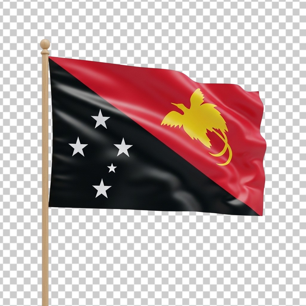 National Flag of Papua New Guinea on a Wooden Pole PNG Transparent Background