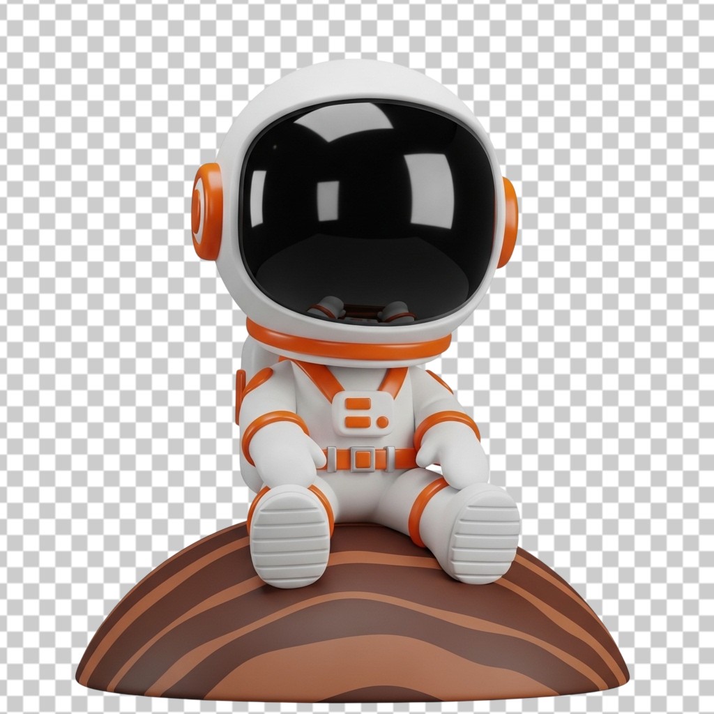 3D Cute Astronaut Character Sitting on Moon Surface PNG Transparent Background
