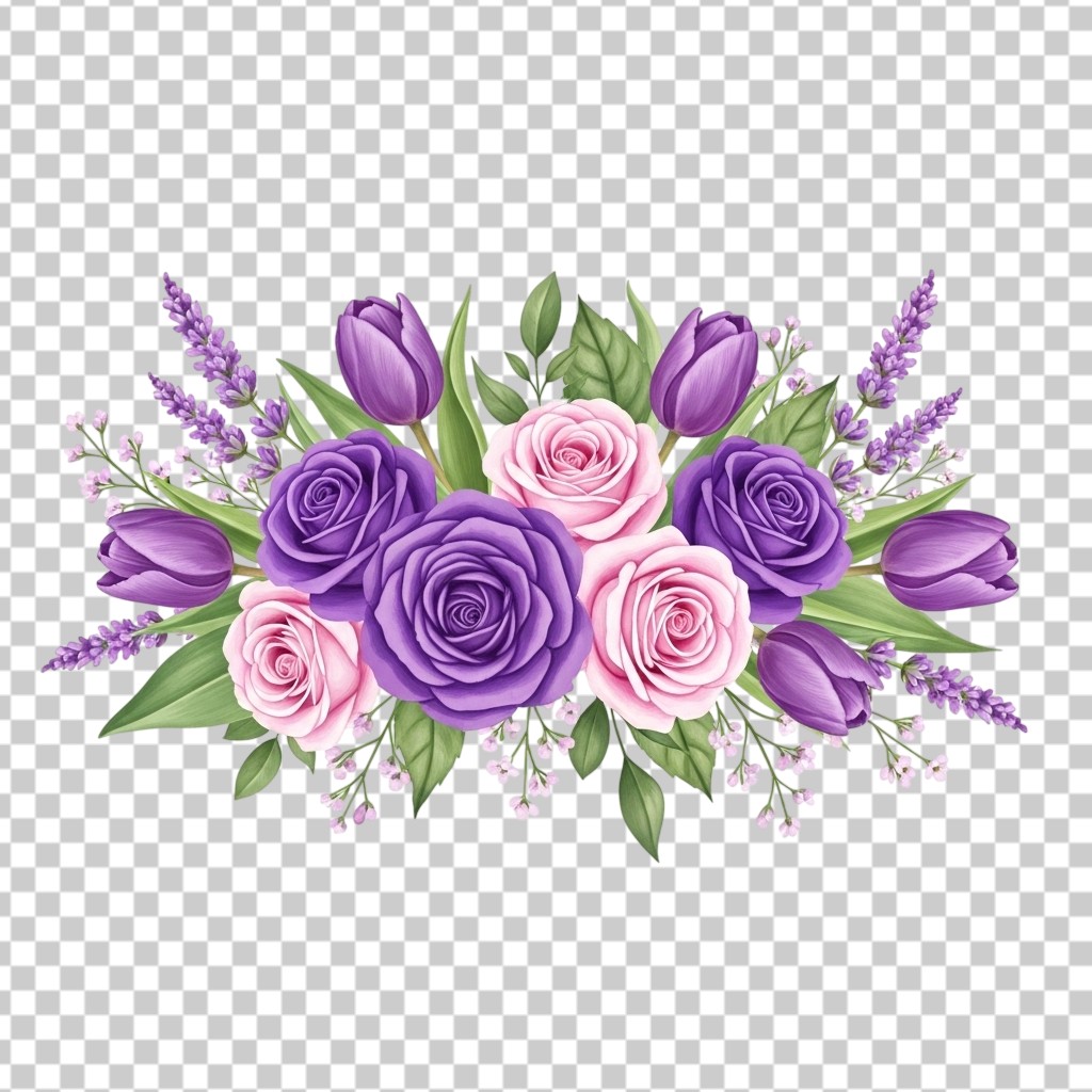 Elegant Purple Rose and Lavender Flower Bouquet PNG Transparent Background