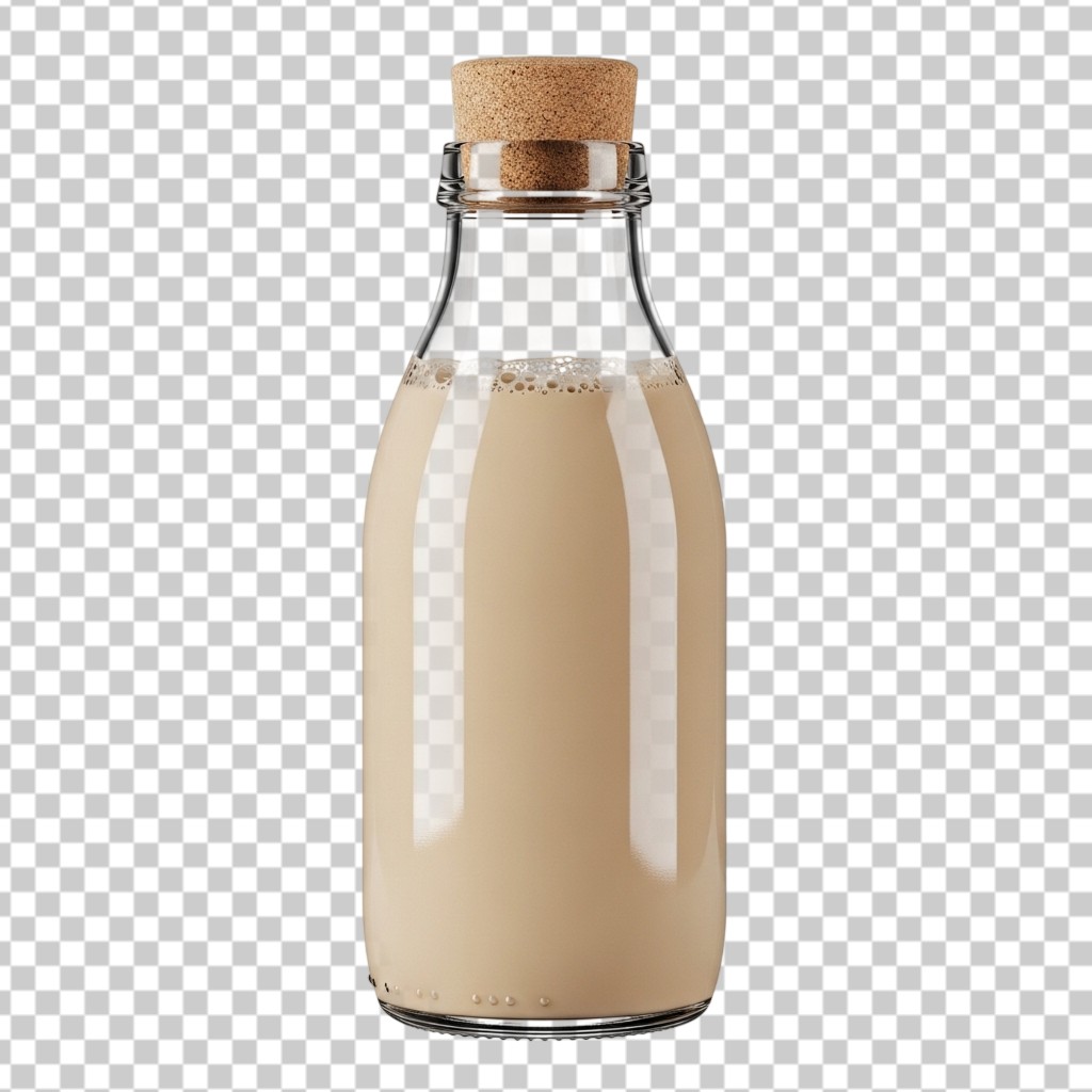 Sealed Glass Bottle of Fresh Milk Tea or Coffee PNG Transparent Background