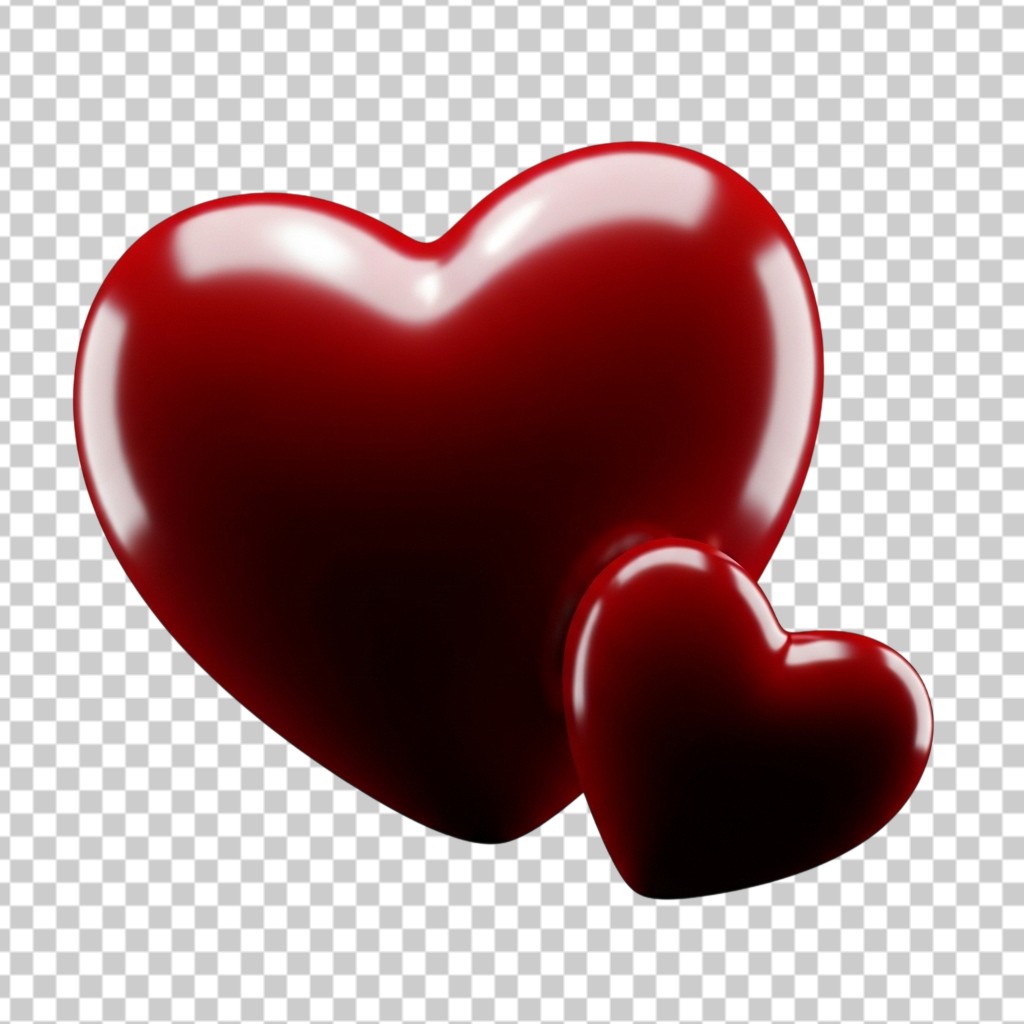 3D Glossy Dark Red 3D Hearts Elements PNG Transparent Background