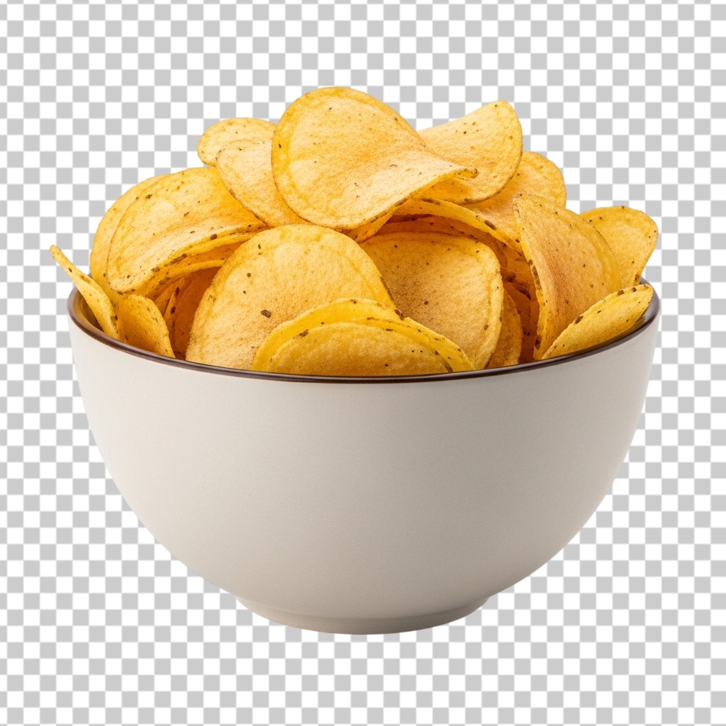 Bowl of Salty Golden Potato Chips Snack PNG Transparent Background