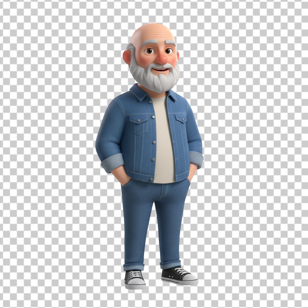 Senior Old Man in Casual Denim Jacket Real People PNG Transparent Background