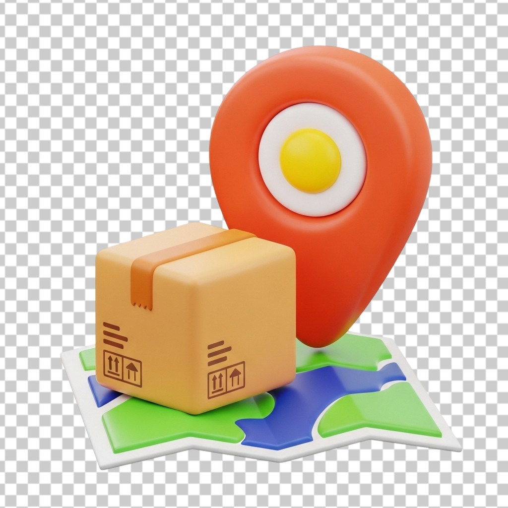 3D Delivery Location Map with Package and Pin PNG Transparent Background