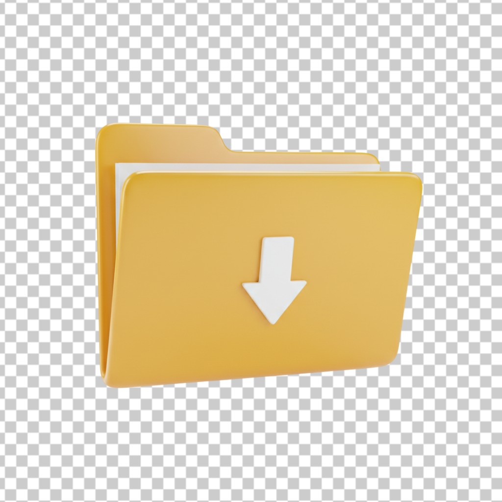 3D Yellow Folder Icon with White Download Arrow PNG Transparent Background