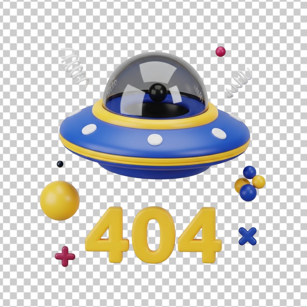 3D UFO 404 Page Not Found Error Illustration PNG Transparent Background