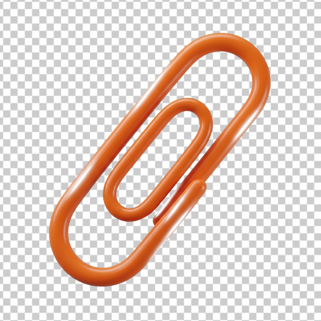 3D Orange Metal Paper Clip Office Supply Illustration PNG Transparent Background