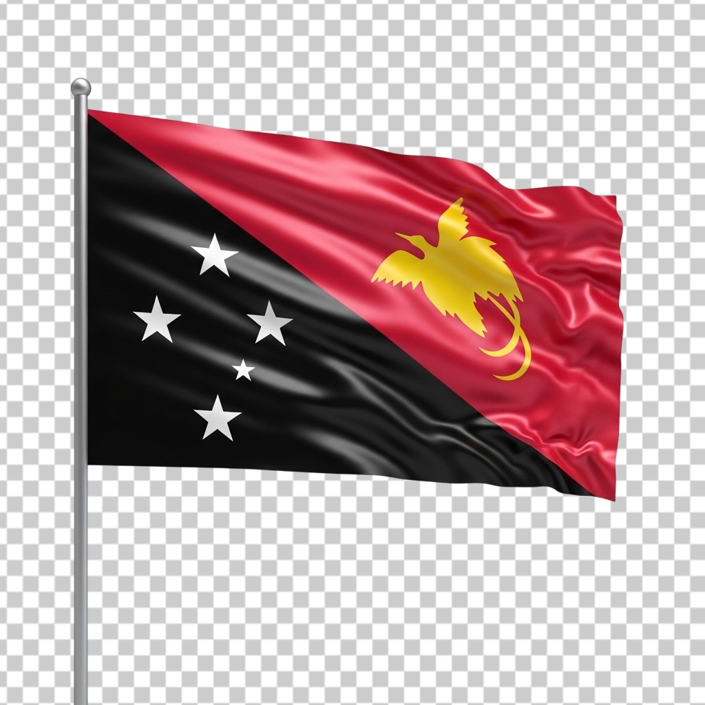 Papua New Guinea National Flag on Flagpole PNG Transparent Background