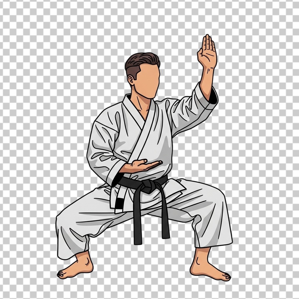 Illustration of a Man in a White Karate Gi Performing Martial Arts PNG Transparent Background