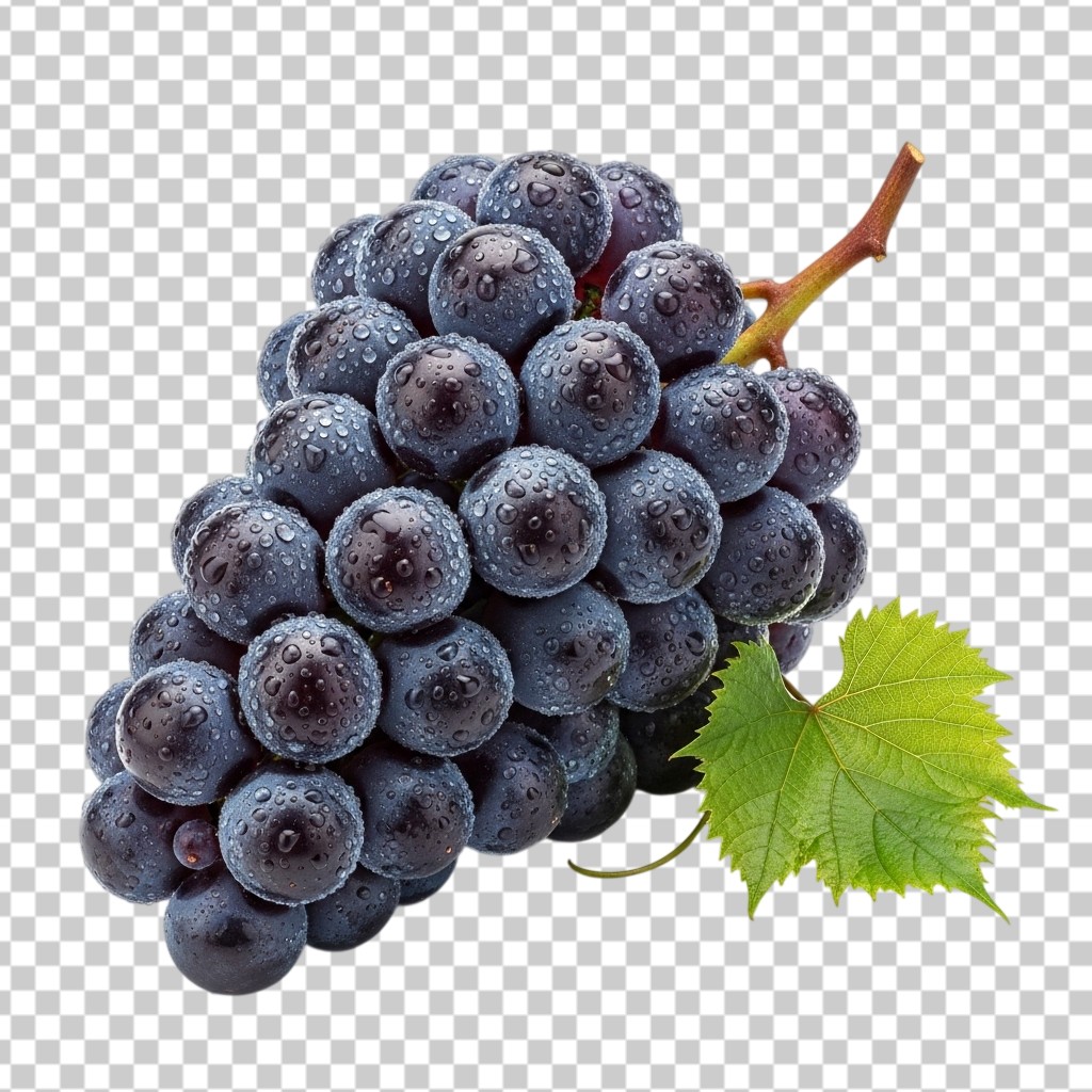 Bunch of Fresh Purple Grapes with Green Leaf PNG Transparent Background