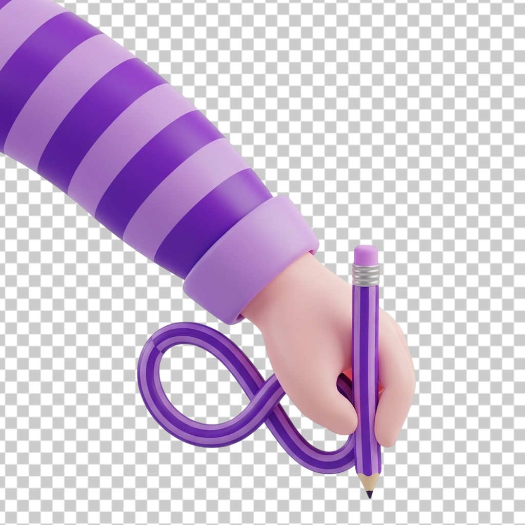 3D Hand Writing with Purple Pencil Education Concept PNG Transparent Background