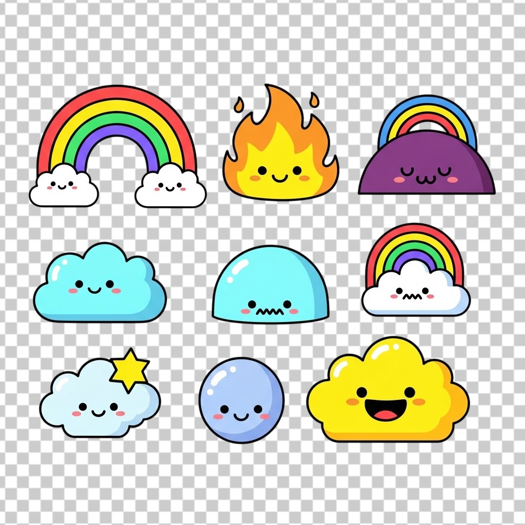 Set of Cute Colorful Weather and Nature Icons PNG Transparent Background