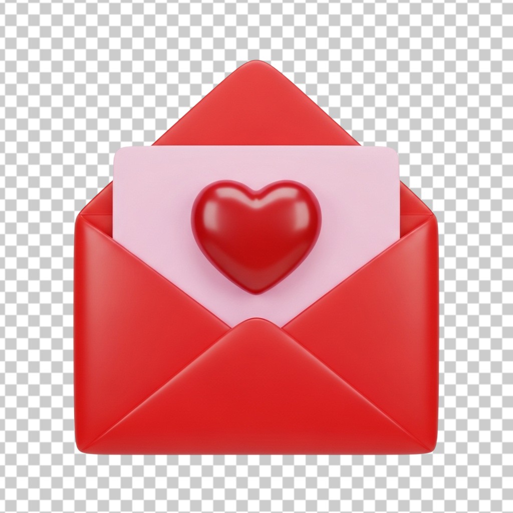 3D Red Envelope with Love Heart Letter PNG Transparent Background
