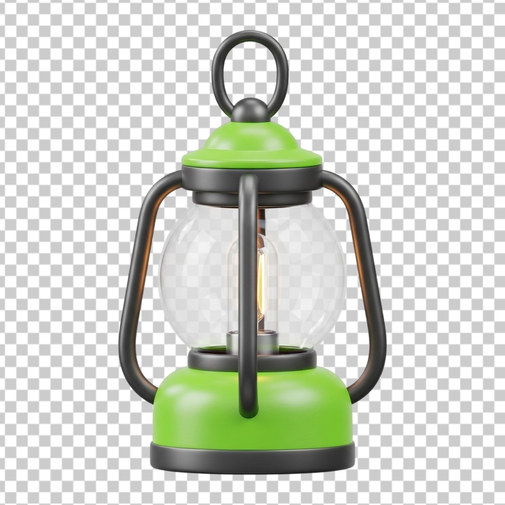 3D Vintage Green Camping Lantern Lamp Gadget PNG Transparent Background