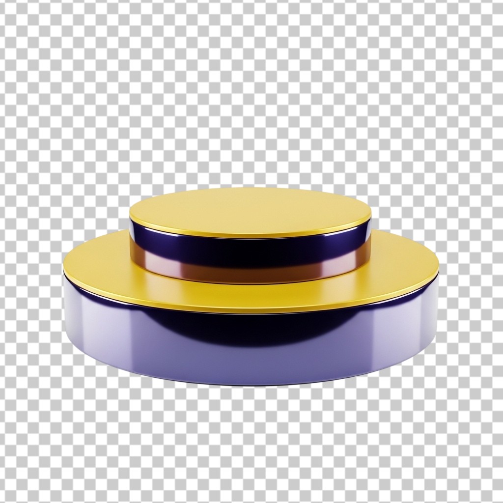 Elegant 3D Round Podium with Golden and Purple Accents for Product Display PNG Transparent Background