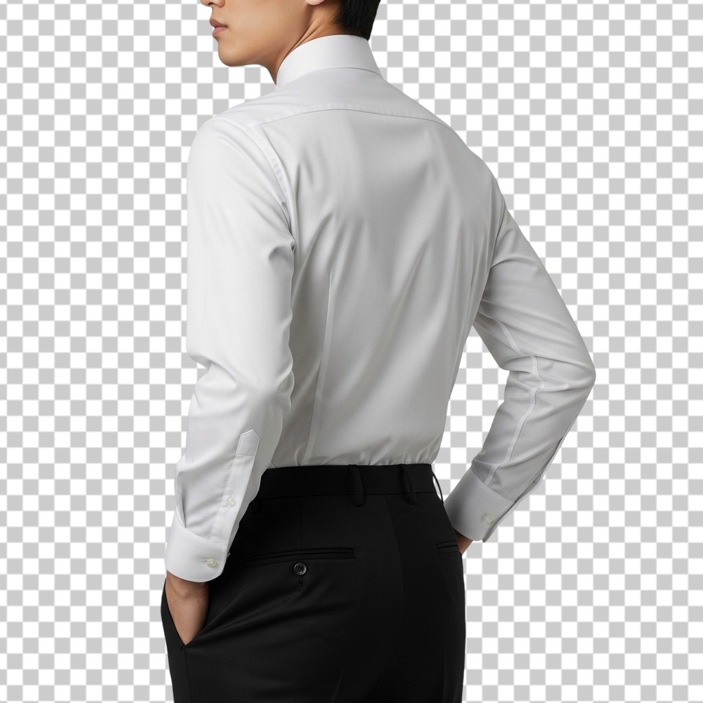 Back View of a Man Wearing a Formal White Button-Down Shirt PNG Transparent Background