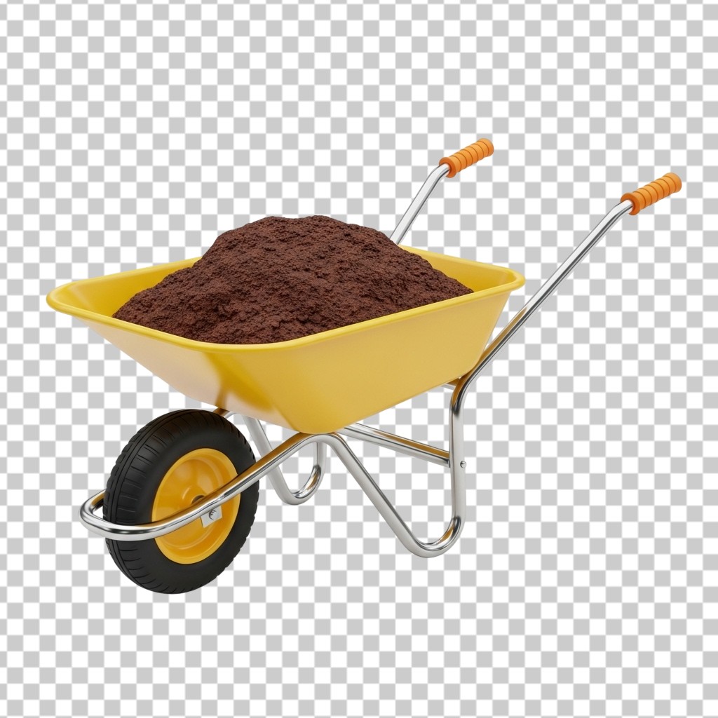 Yellow Metal Wheelbarrow Filled with Earth for Garden Maintenance PNG Transparent Background