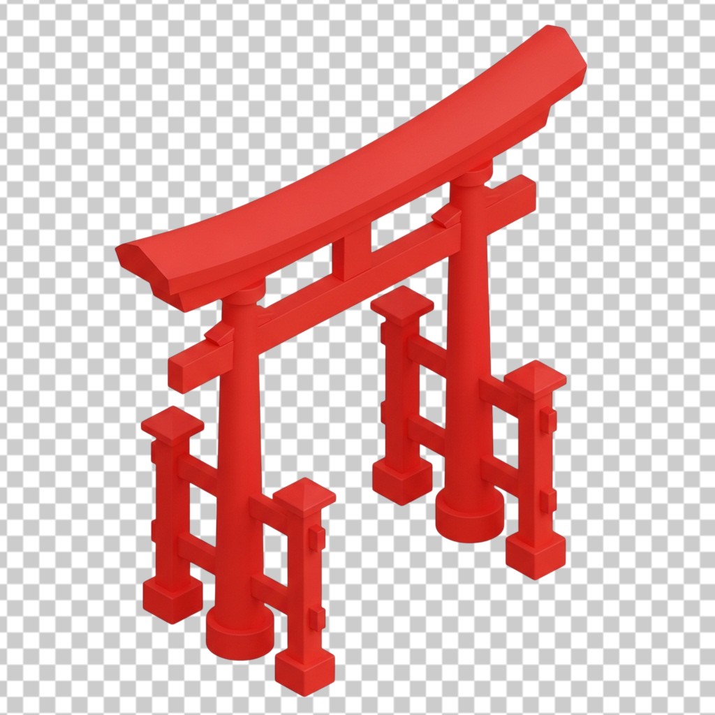 3D Red Traditional Japanese Torii Gate Landmark Model PNG Transparent Background