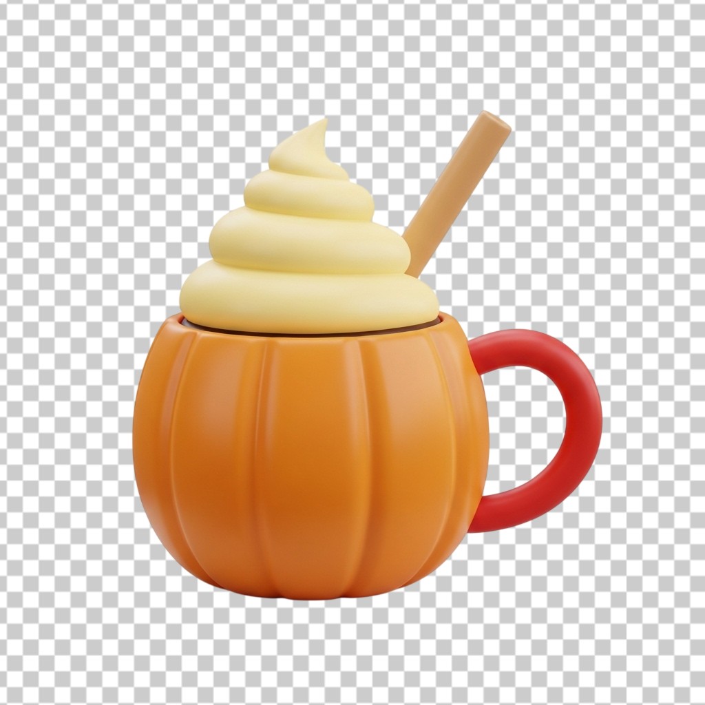 3D Pumpkin Shaped Coffee Mug with Whipped Cream PNG Transparent Background