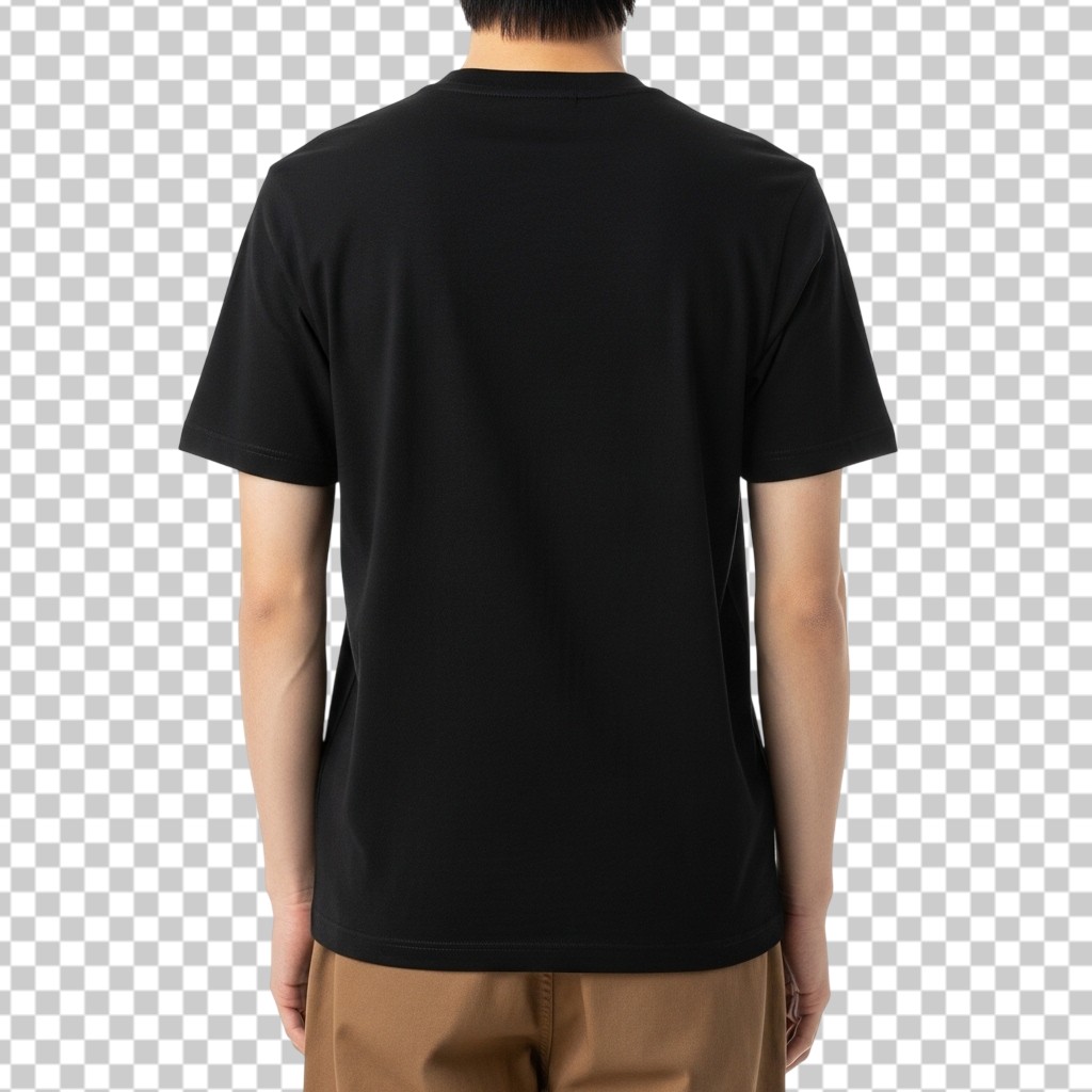 Back View of a Man Wearing a Plain Black T-Shirt PNG Transparent Background