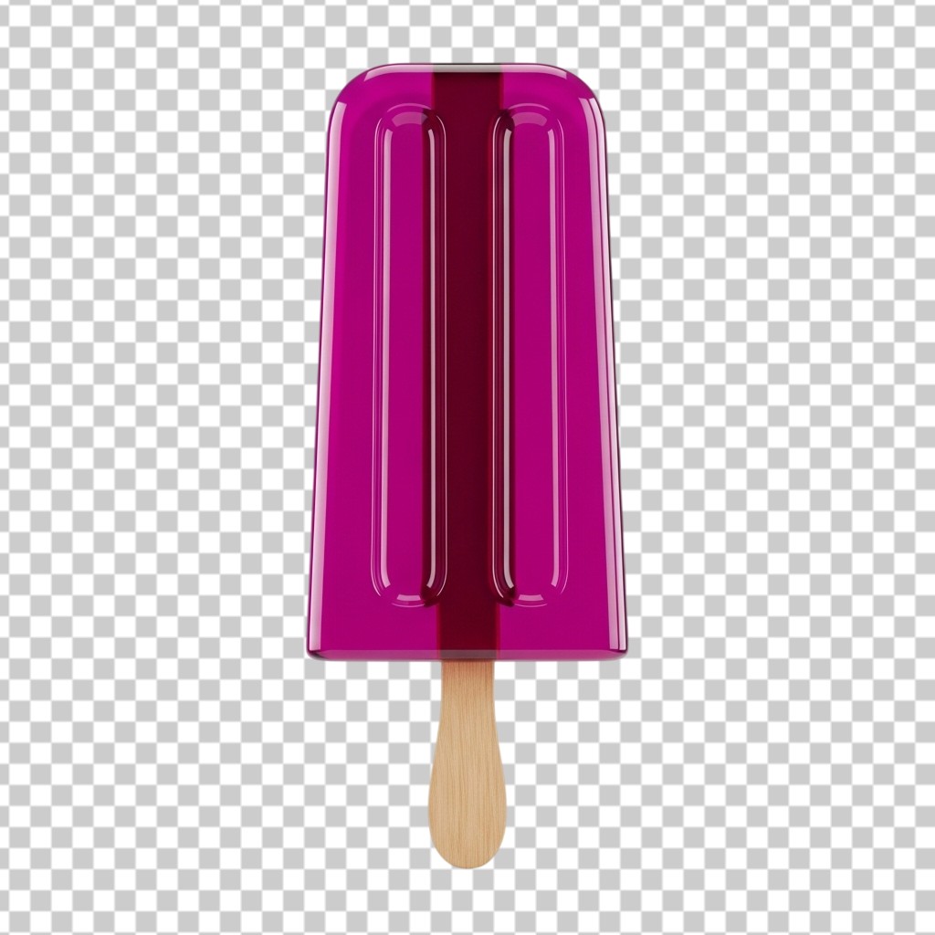 3D Purple Fruit Flavored Ice Cream Popsicle on Stick PNG Transparent Background