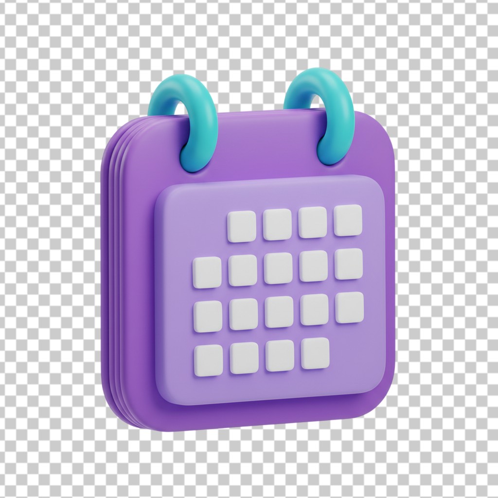 3D Purple Calendar Icon with White Grid PNG Transparent Background