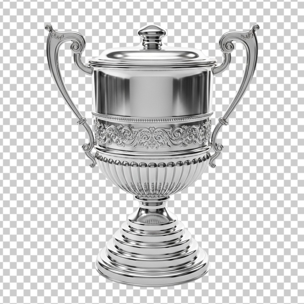 Elegant Silver Champion Trophy Cup PNG Transparent Background