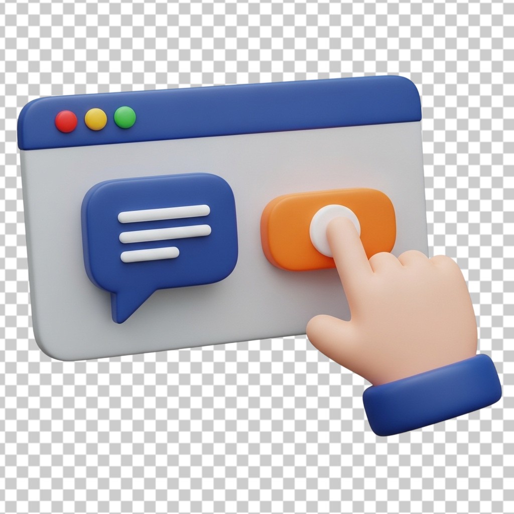 3D Hand Clicking on Website Interface Chat Bubble Button PNG Transparent Background