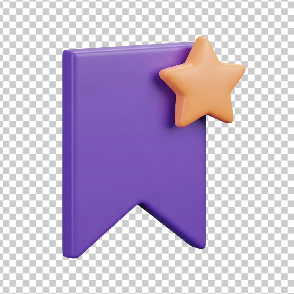 3D Purple Bookmark Icon with Gold Star PNG Transparent Background