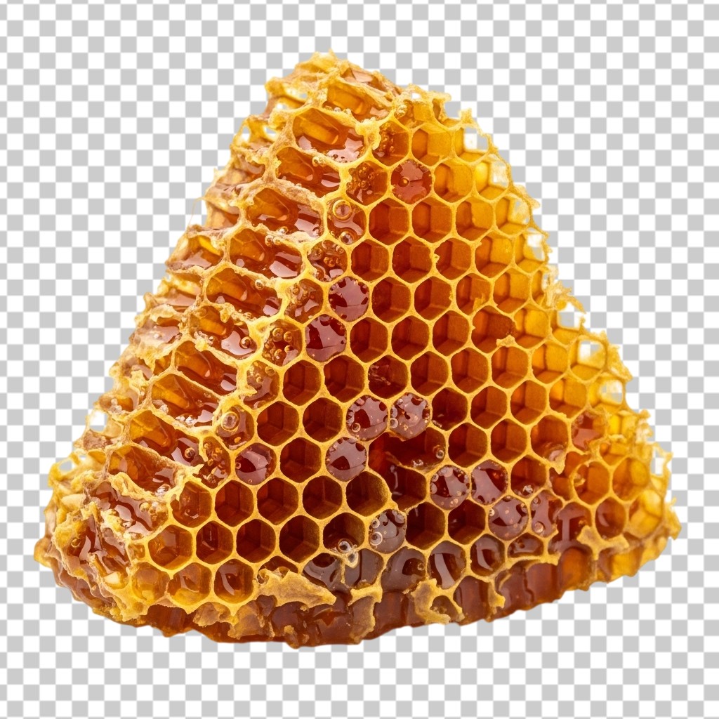 Wedge Shaped Piece of Natural Golden Bee Honeycomb PNG Transparent Background