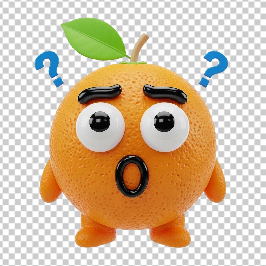 Confused Orange Fruit Character with Question Marks 3D Illustration PNG Transparent Background