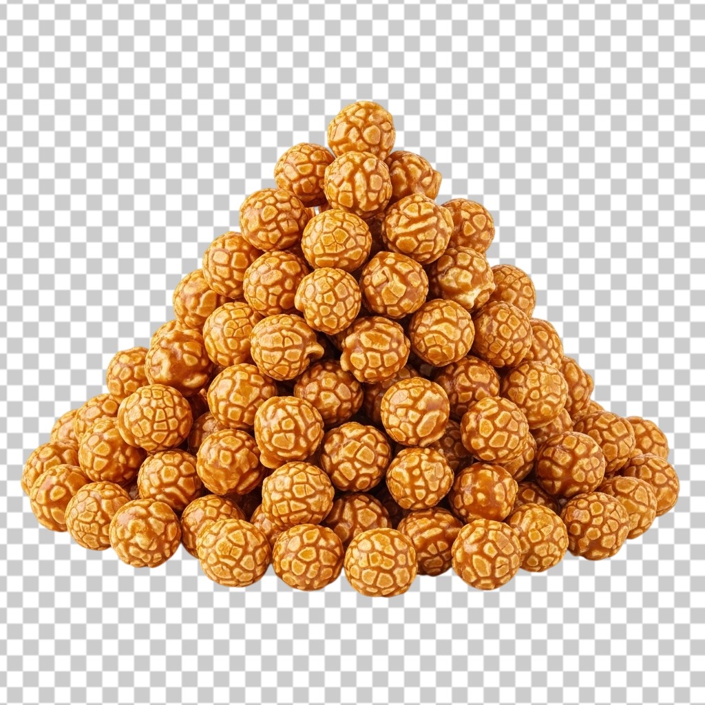 Pyramid Pile of Crunchy Sweet Caramel Glazed Popcorn Snack PNG Transparent Background