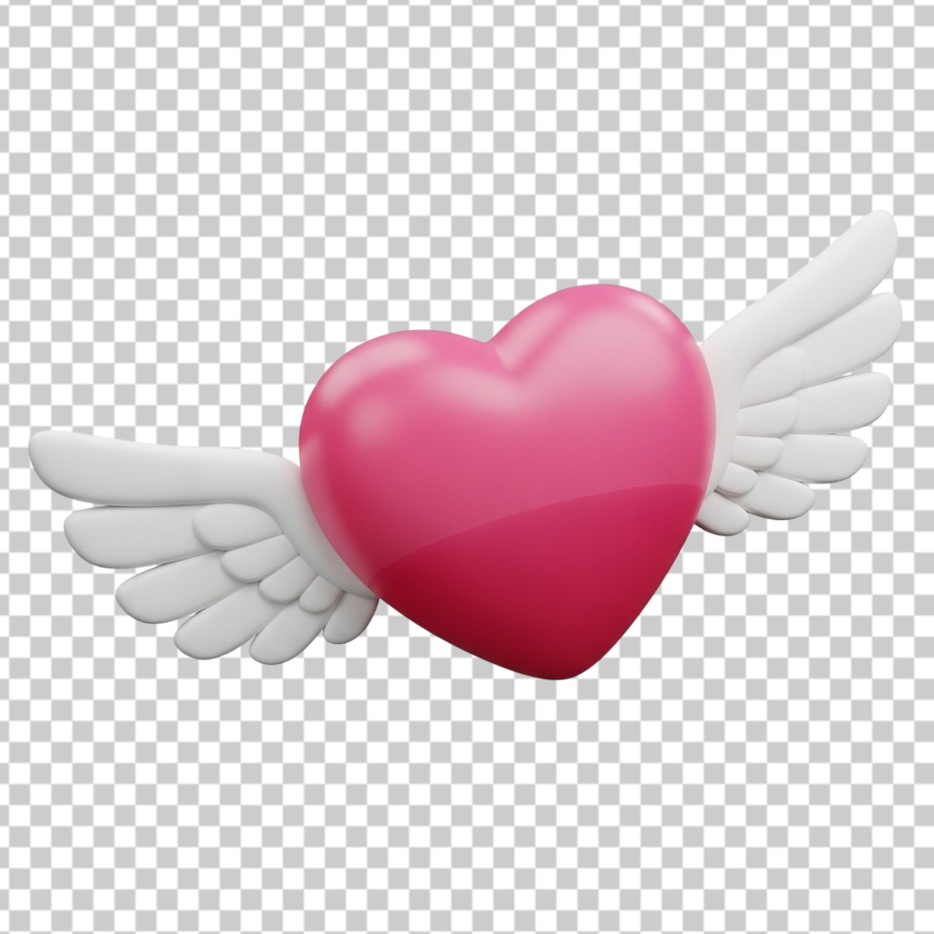 3D Pink Heart with White Wings PNG Transparent Background