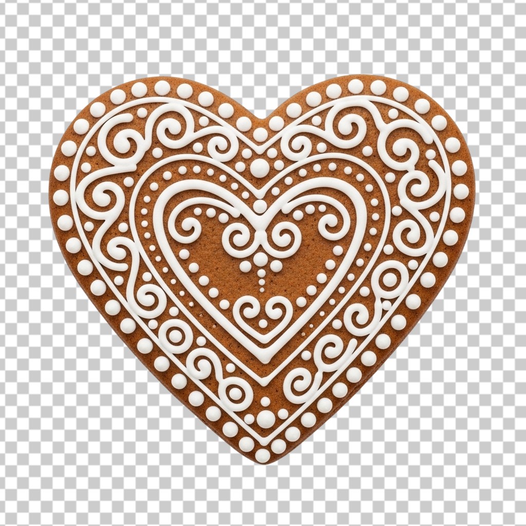 Heart Shaped Gingerbread Cookie with White Icing Decoration PNG Transparent Background