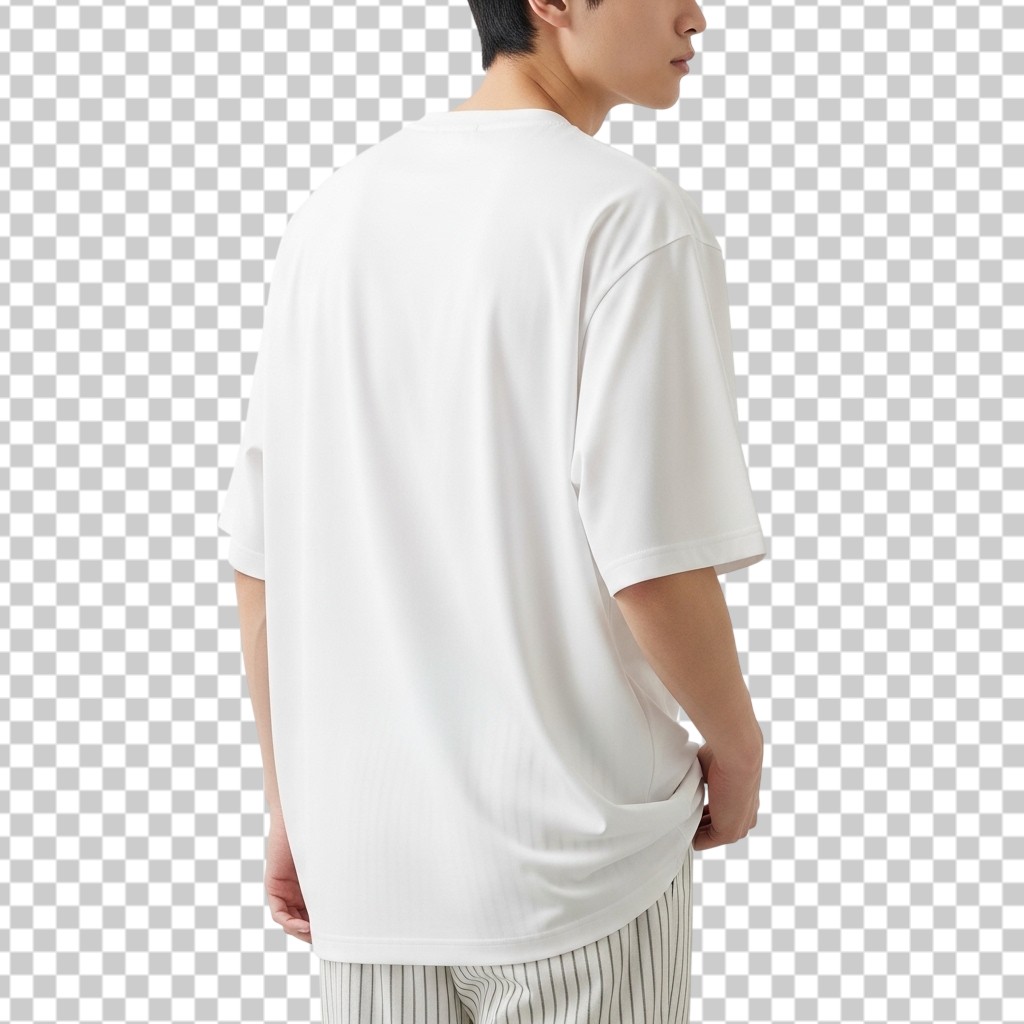 Back View of Man Wearing Oversized White T-Shirt PNG Transparent Background