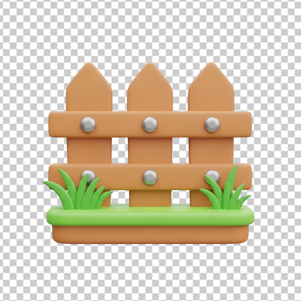 Wooden Garden Fence with Green Grass 3D Illustration PNG Transparent Background