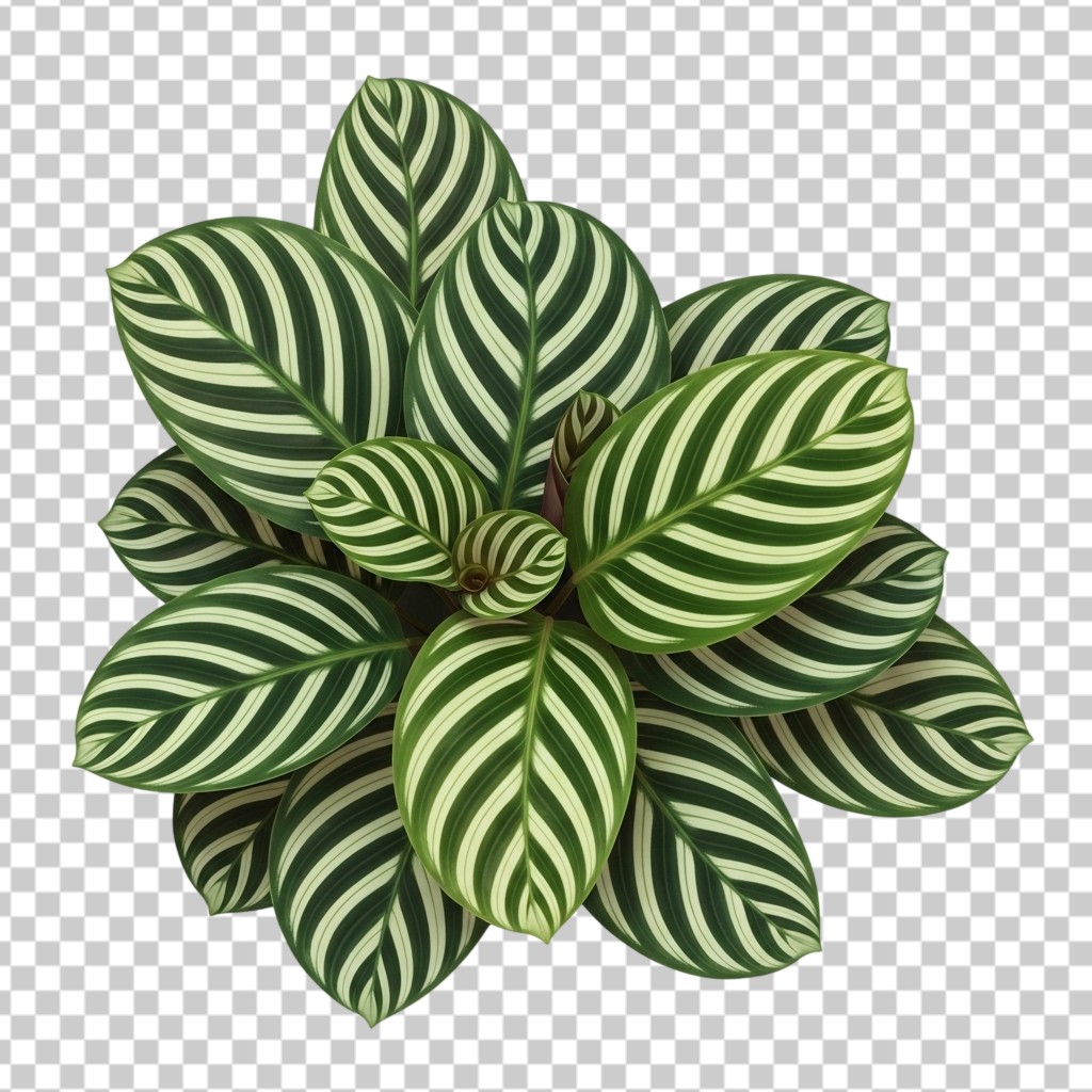 Full Calathea Plant with Dense Striped Green Leaves PNG Transparent Background