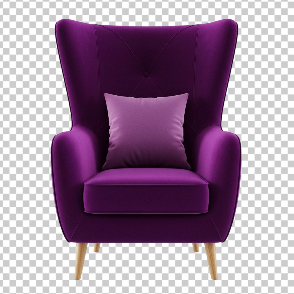 Elegant Purple Velvet Wingback Armchair PNG Transparent Background