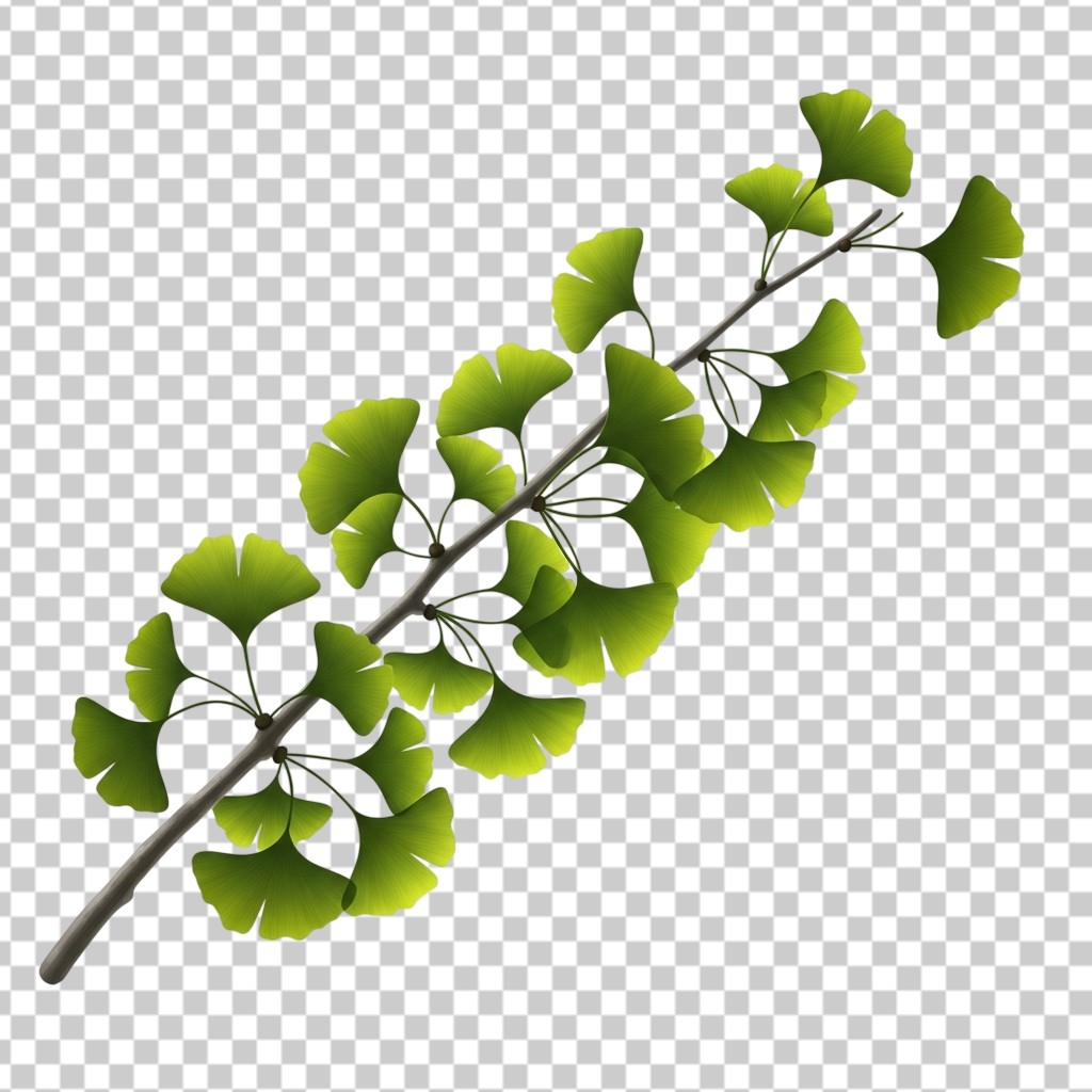 Green Ginkgo Biloba Tree Branch with Leaves PNG Transparent Background